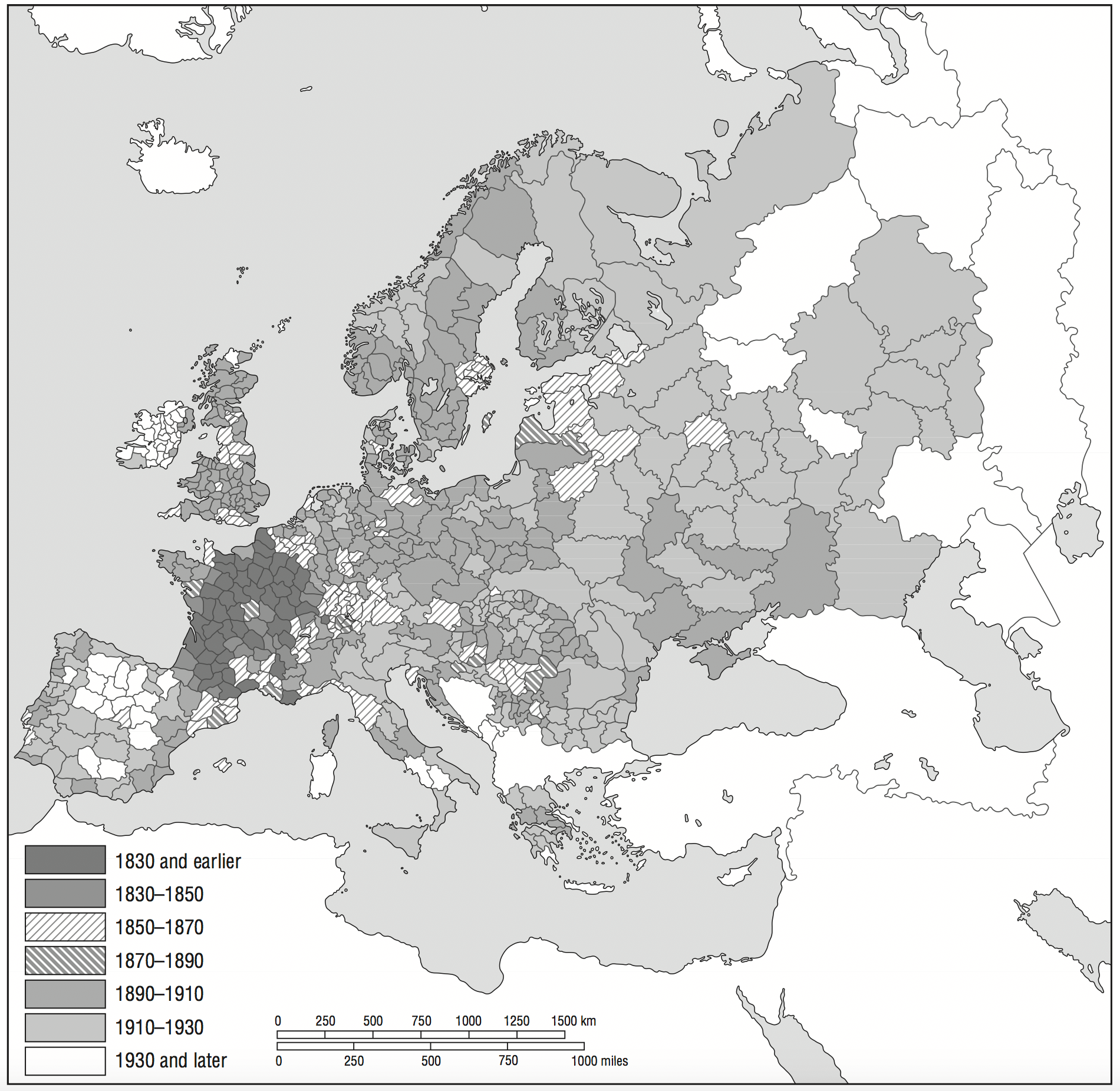 The visualization is taken from the chapter by George Alter and Gregory Clark (2010) — "The demographic transition and human capital" in Broadberry, Stephen, and Kevin H. O'Rourke. The Cambridge Economic History of Modern Europe: Volume 1, 1700–1870. Cambridge University Press, 2010. The original data was published by Coale and Watkins (1986).
