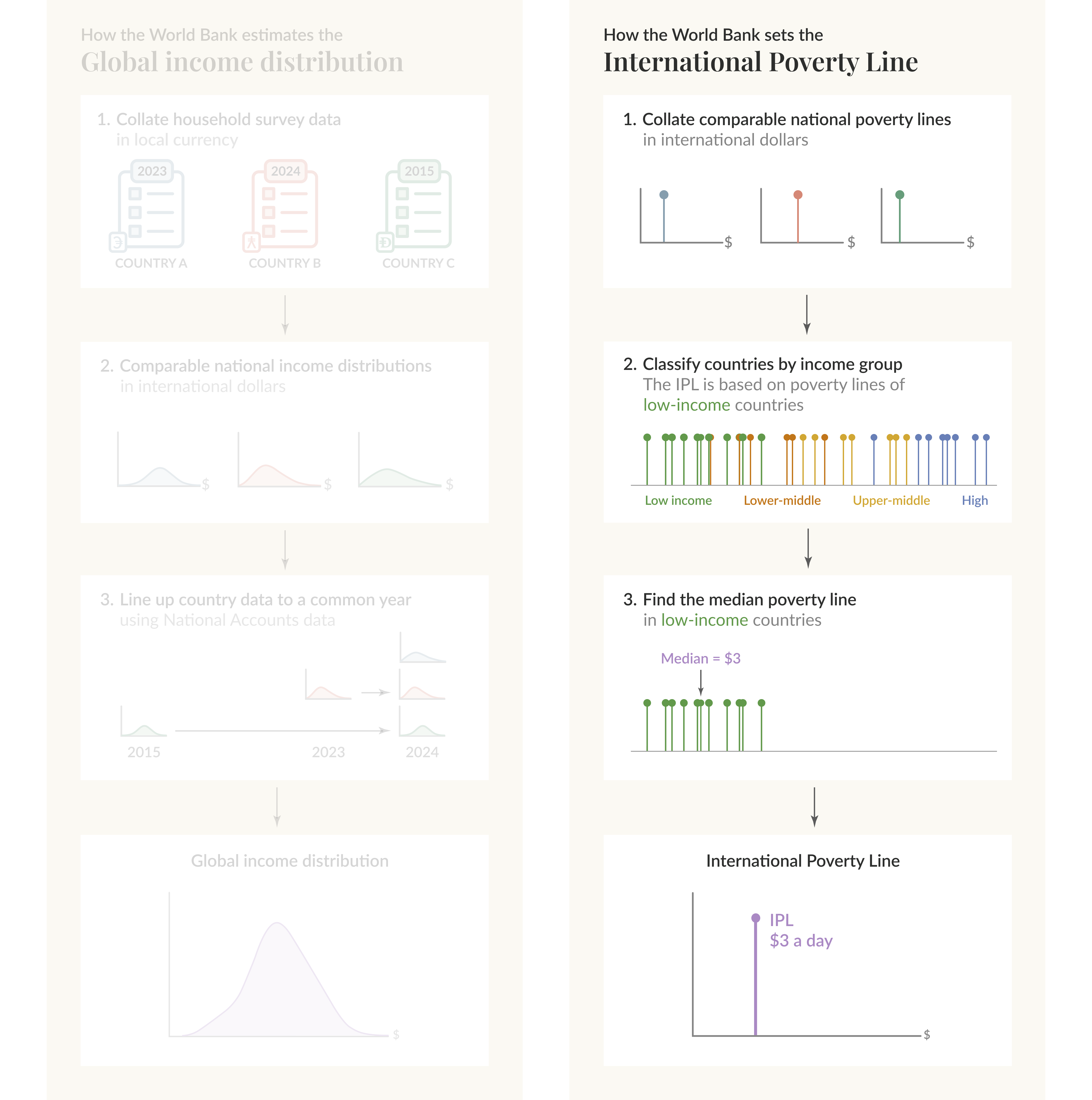 You can read more about the method in Foster et al. (2025) — the World Bank paper accompanying the June 2025 update to the IPL. An older paper, Jolliffe and Beer Prydz (2016), initially set out the methodology and provides a good background.